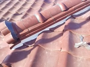鬼瓦が落ちかかっていたのでしっかりとラバー止めして廻りを漆喰で囲み隙間のあったのし瓦もラバーでしっかりと補修しています。
