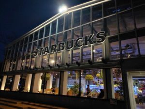 夜の風景を堪能するまで少々時間待ちで建物内のスターバックスでお茶をして夕暮れを待ちました。