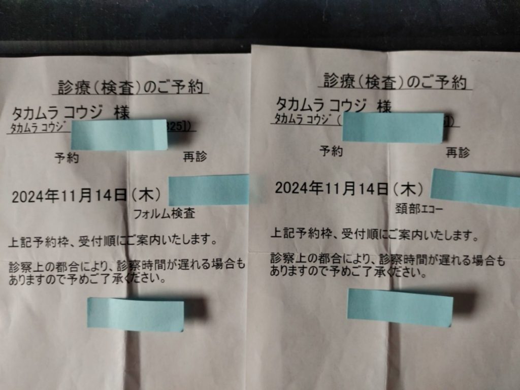 12月中旬頃に生活習慣病予防健診を受ける予約を入れてますがその前に「頚部エコー」と「フォルム検査」を本日、検査に行ってきました。