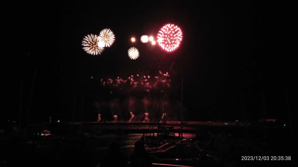 やっぱり、冬場は空気が透き通るので花火も綺麗にまた花火の音も響きわたります。まして熱海は周りが山に囲まれてので音がこもる感じです。