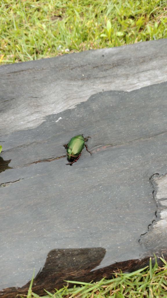 朝起きるとお皿にキレイな光沢のある「かなぶん」が器のなかで溺れていたので助けてあげました。